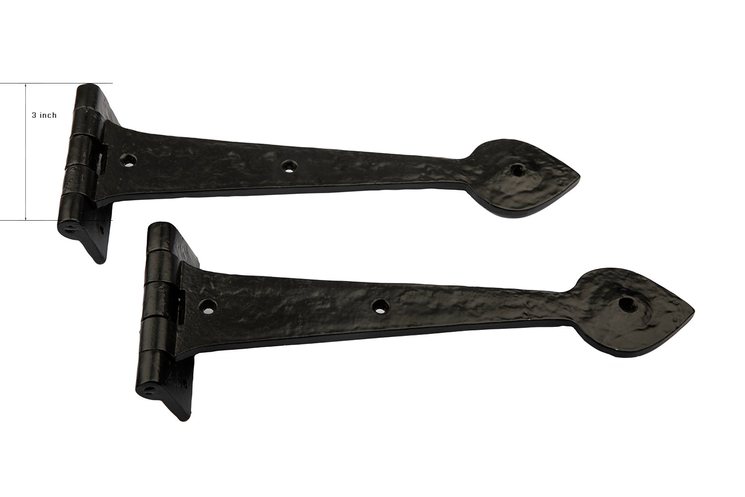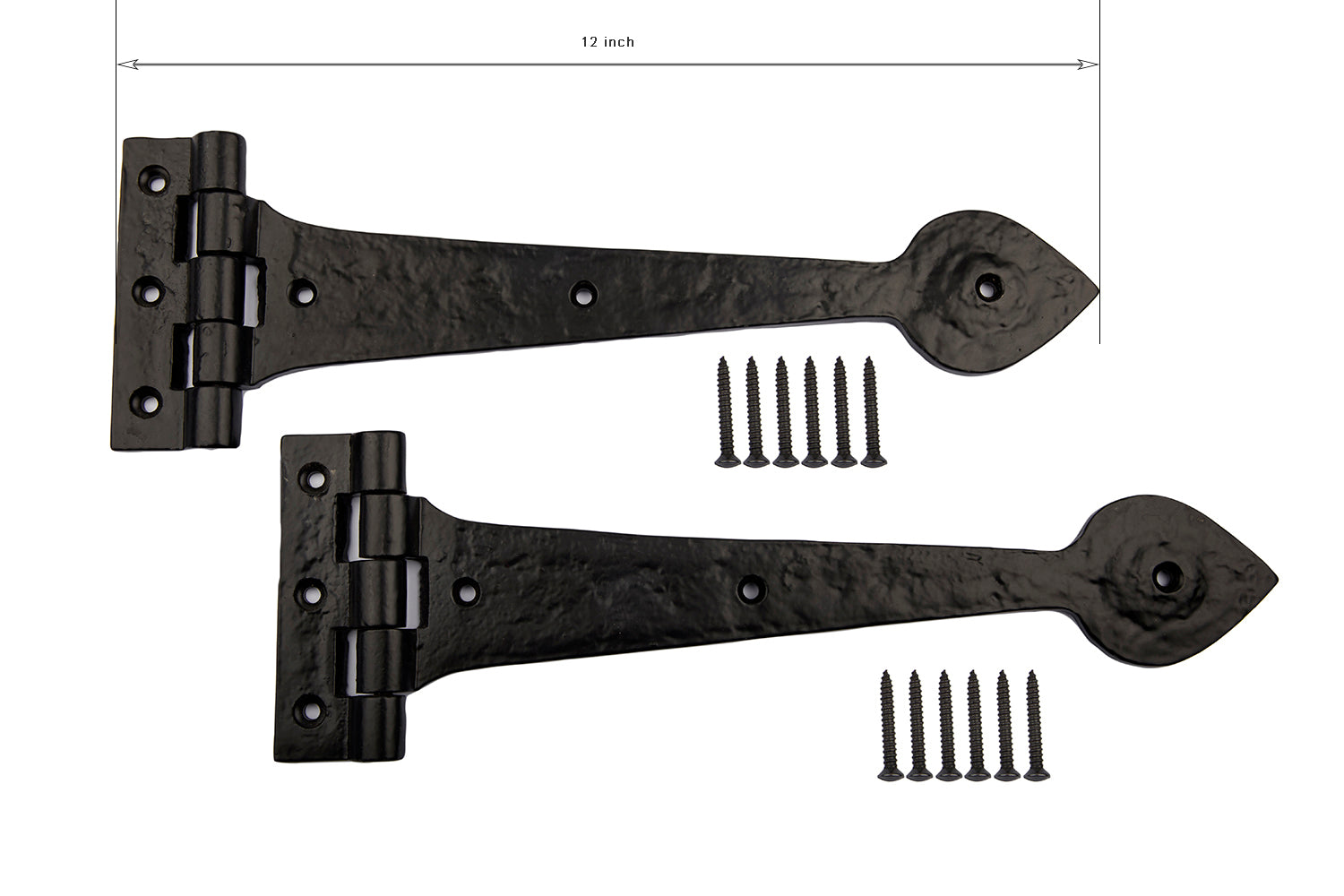 Antique Black spear end tee hinges finished in antique black, Size: 12 inches, supplied with matching fixing screws. High-quality cast iron, ready to ship in 1 day.