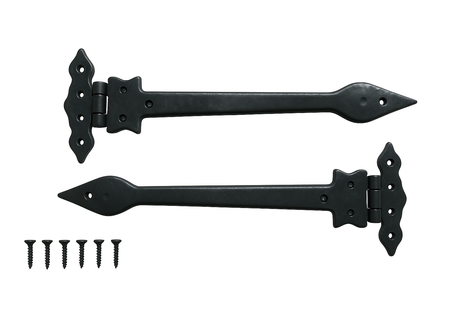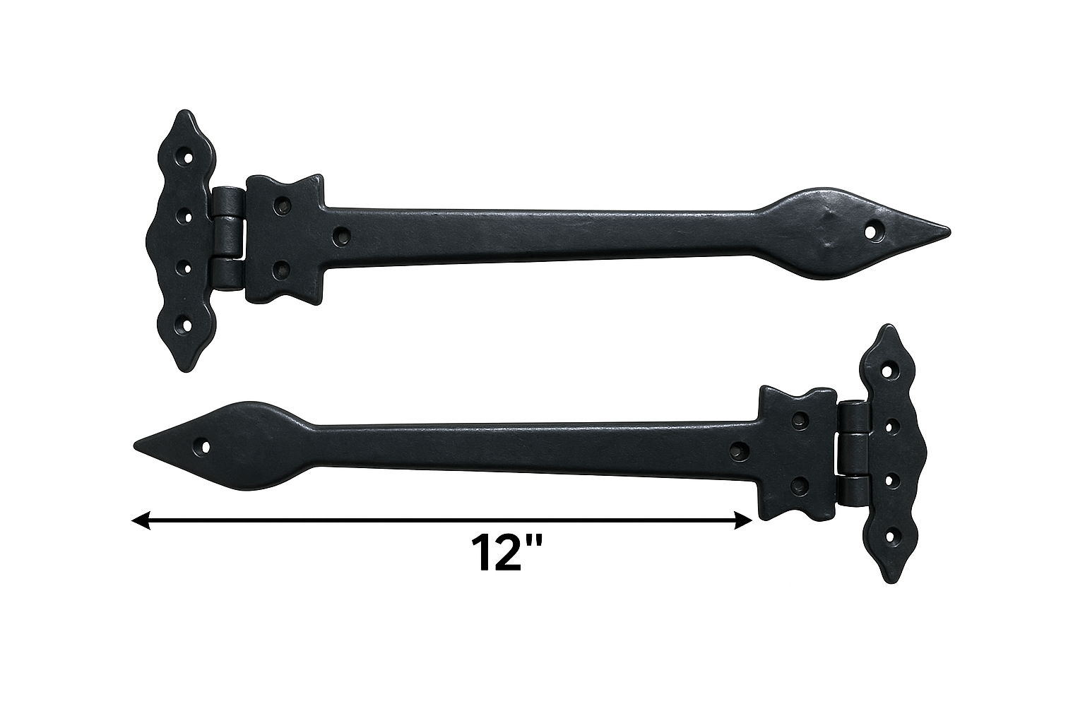 Black Cast Iron Spear Hinges Leaf Design Pair Of New (12 inches)
