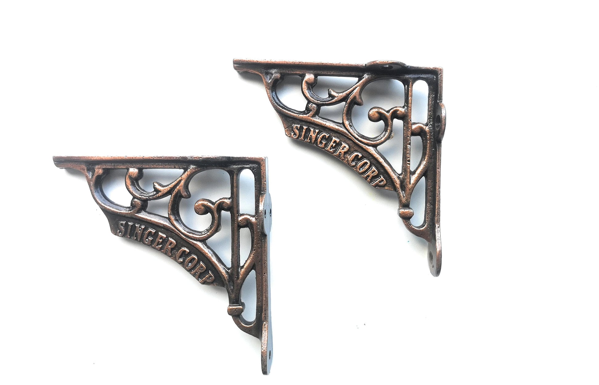 Pack of 2 Antique Copper Brackets in Singer Corp design.